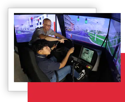 Simulation training is a part of every course here at Driving Academy. We are one of the few schools in the US that can offer this as part of a CDL training program. These simulators will give you years of experience within a few days of simulation training. They get our students ready to master skills like shifting and driving on the road in a safe environment. Come in for a school tour and get a free demo on a simulator!
